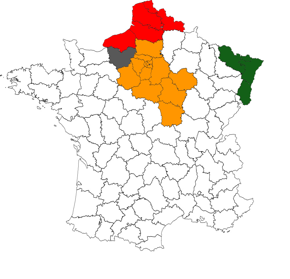 C'est la carte de France en réalité , avec les départements/régions délimitées attribuées.