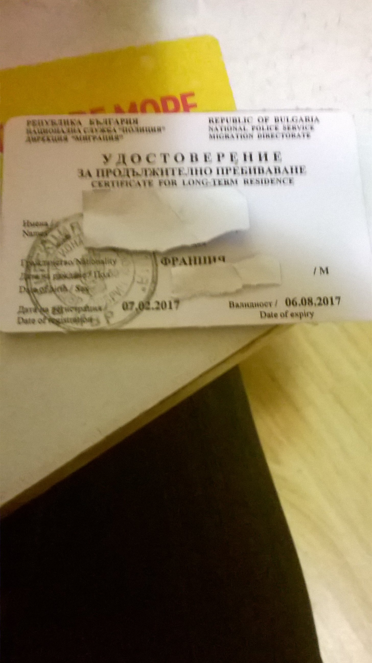 Ah et au cas-où certains pensent que je mytho ou quoi pour vous rassurer voilà ma carte Erasmus+ et ma "carte de séjour" (enfin enregistrement auprès de la police bulgare) :