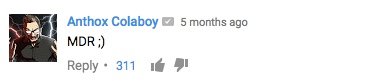 une video pour se la péter, qui s'intitule "La Réponse de Cyprien". Il passe 80% du temps de la vidéo a se venter et a citer tous les youtubeurs qui l'ont felicité, parce qu'ils sont plus importants vu qu'ils ont plus d'abonnés, logique http://image.noelshack.com/fichiers/2016/36/1473263957-risitas33.png. Alors que je rappelle que la majorité de son succes constitue dans la grosse hausse d'abonnements qu'il a reçu, mais bon, le plus important c'est les Grands. Va croire après les messages hypocrites comme "Merci surtout vous les viewers qui faites que maintenant je suis super connu etc.", pendant qu'il suce parle des vendus.