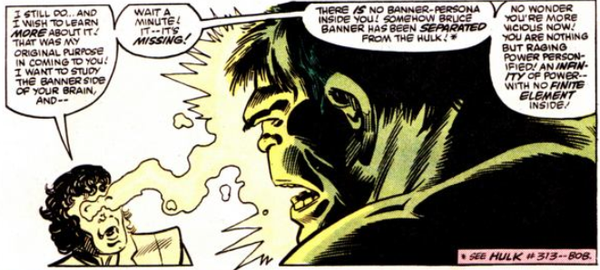 Dans Thanos Quest N1:Thanos dit qu'il a tout fait pour éviter au maximum le conflit avec hulk pendant des années car il craint ce dernier.