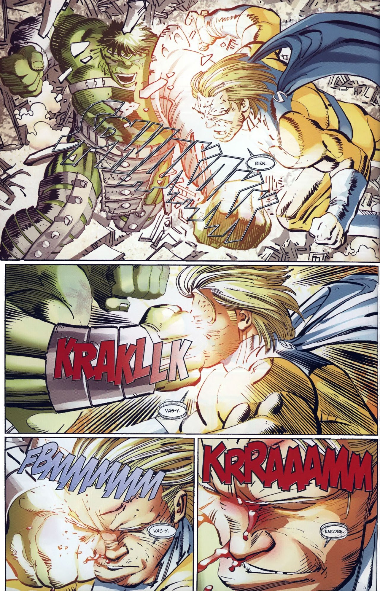 Hulk est capable de tenir contre,skaar,le surfer d'argent,de combattre thanos,sentry,thor,galactus,le jardiner...Les images précédentes sont entièrement canon,ne sont pas pris en compte les animés,films marvel et cross over dc / marvel,qui ne sont pas canon.