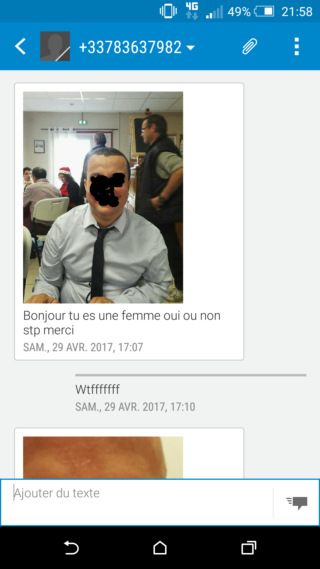 Je deconne pas mec, mustapha m'a déjà contacté le mois dernier, il est taré il doit faire ça avec plein de numéros...Euh ?? T'es sûr que t'a rien modifié ? Parce que t'as clairement une photo là.
