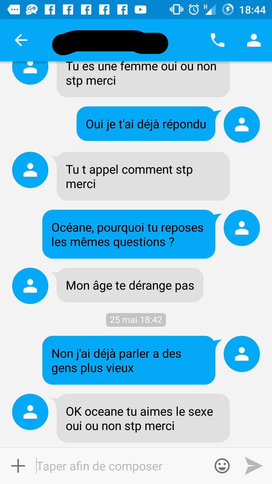 Le 25 mai 2017 à 18:40:29 OverMontre a écrit :Le 25 mai 2017 à 18:39:57 AnusdeTicetTac4 a écrit :"mon age te dérange pas" Je lui dit quoi ?