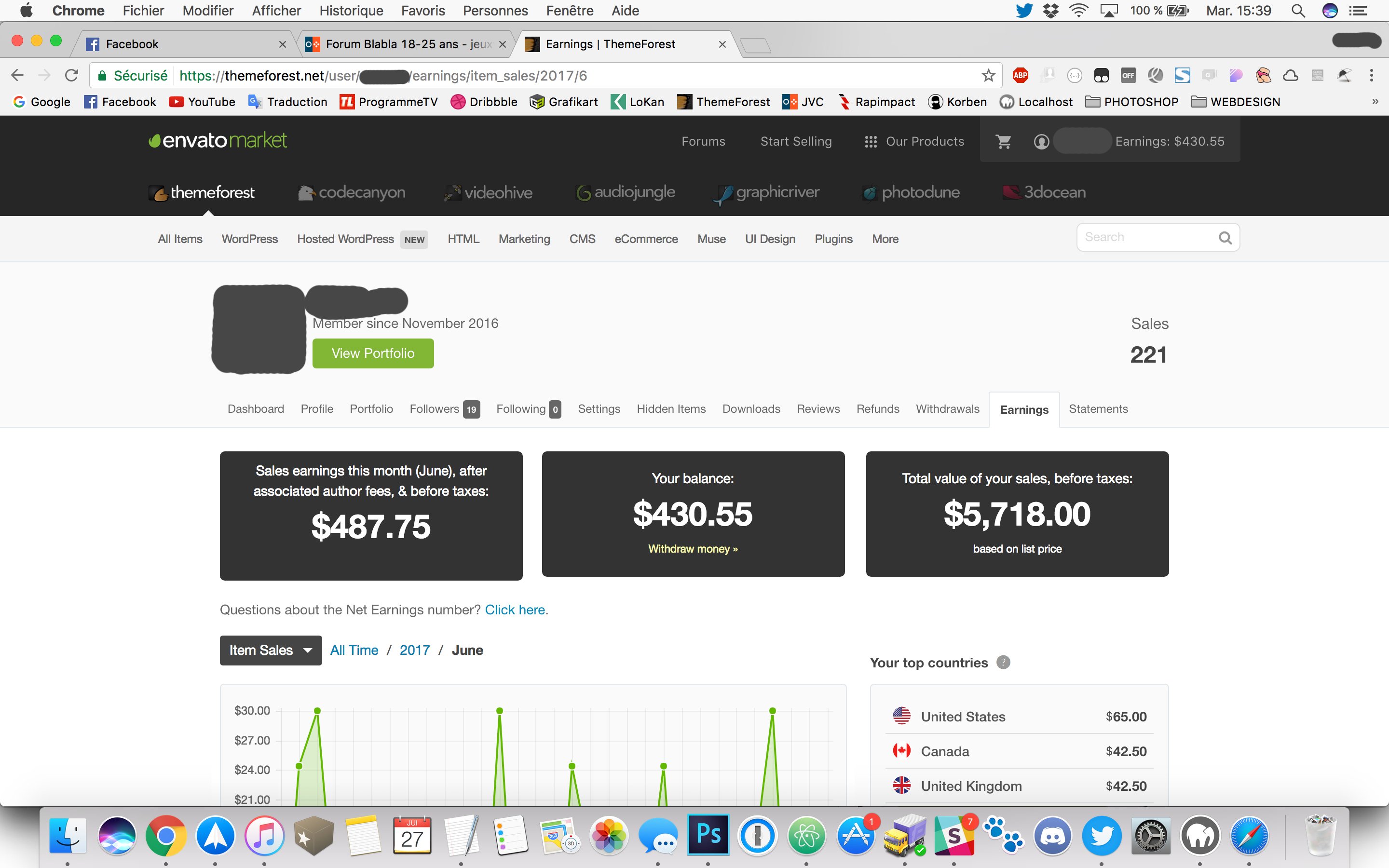 CodeCanyon pour tout ce qui est code, plugins, scripts PHP qui servent à tout et n'importe quoi, même des simples pack de boutons CSS se vendent