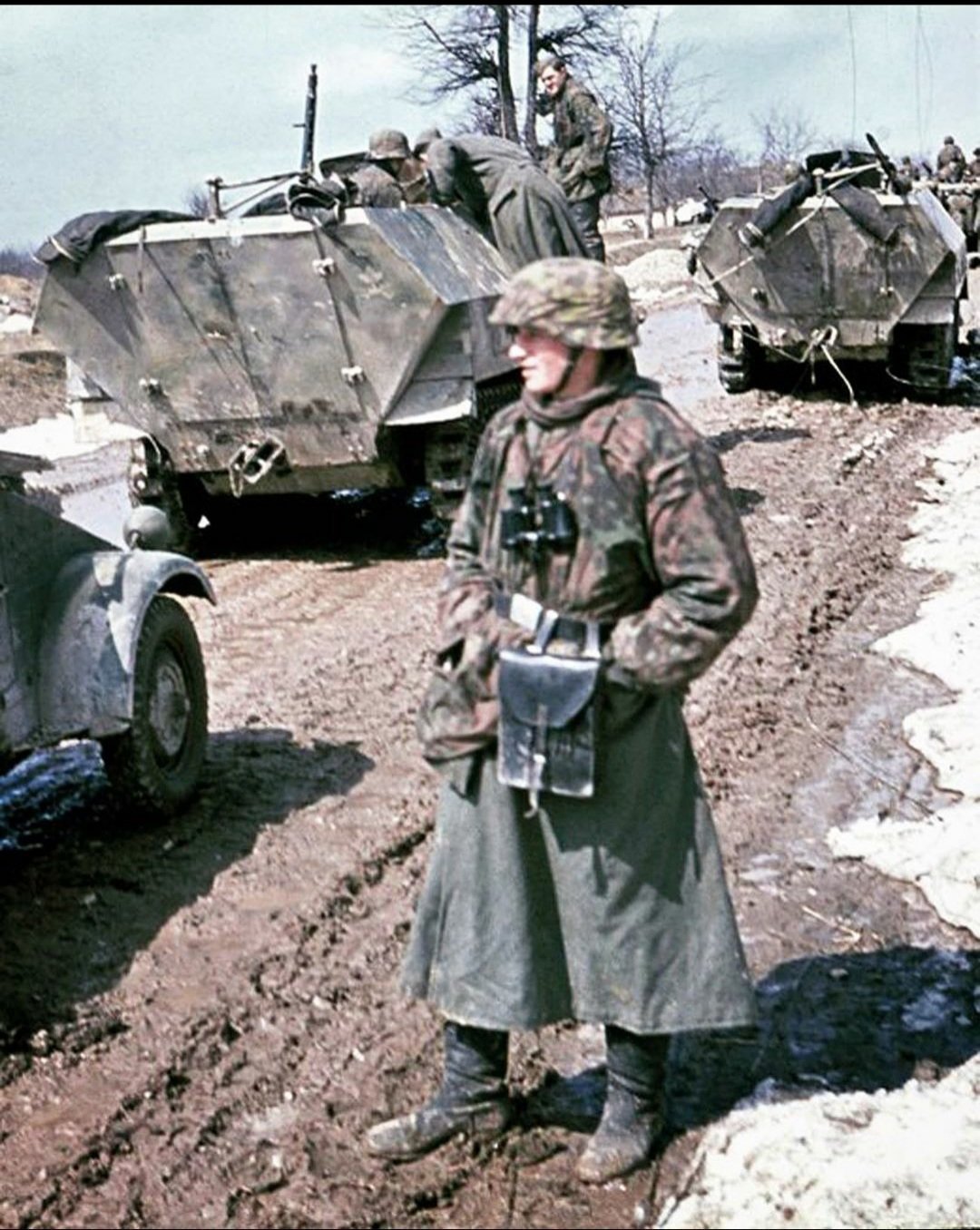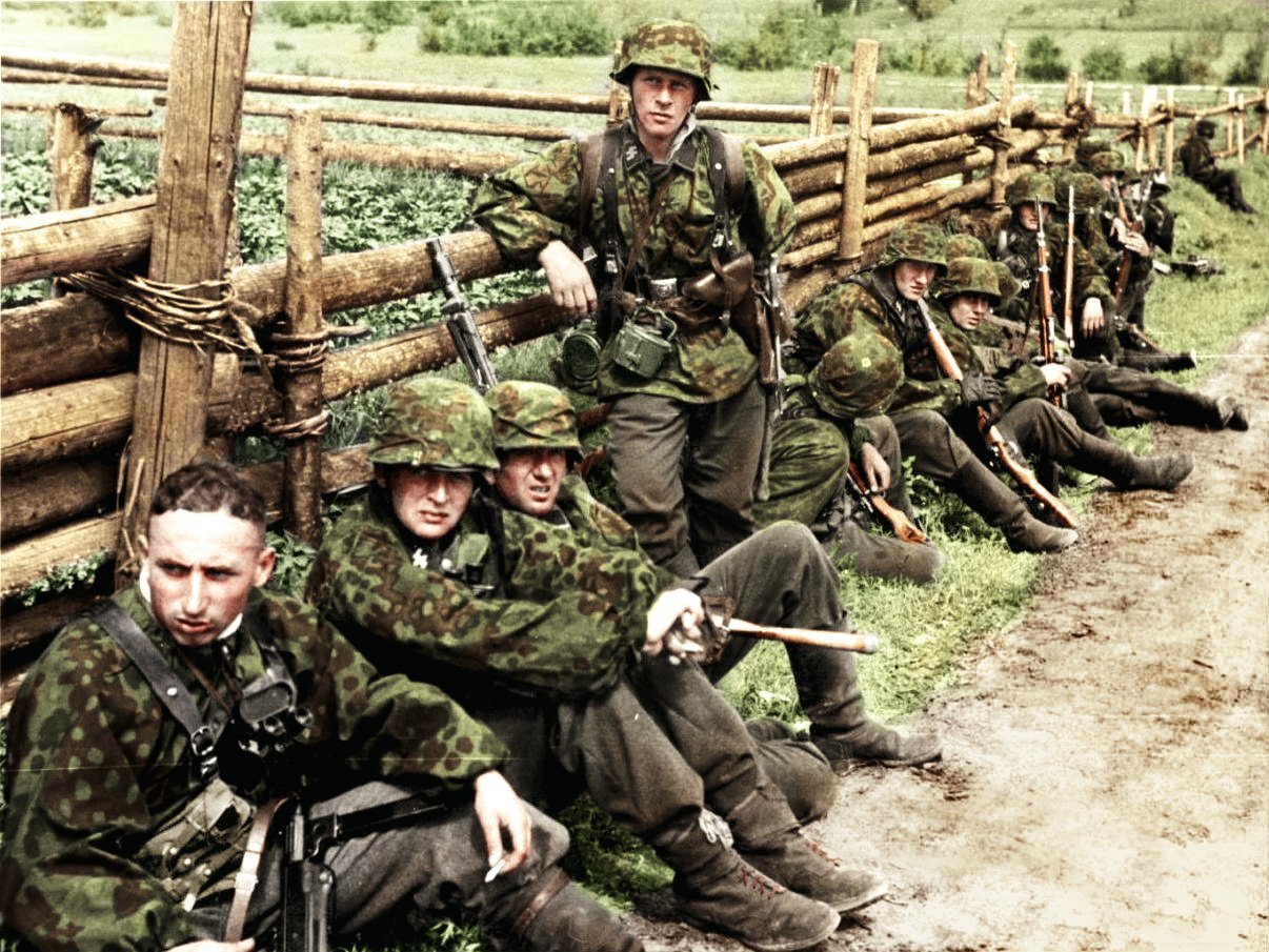 La mode n'était pas perdue pour les Allemands. Ils accordent une grande importance à l'image publique. La firme d'Hugo Boss (un grand créateur de mode en Europe aujourd'hui) était responsable de la conception des uniformes.Quant au camouflage, l'initiative consistait à en doter les troupes SS pour réduire les pertes. Leurs designs étaient différents de ceux de l'armée car ils étaient conçus par un officier SS et produits pour les seuls SS.