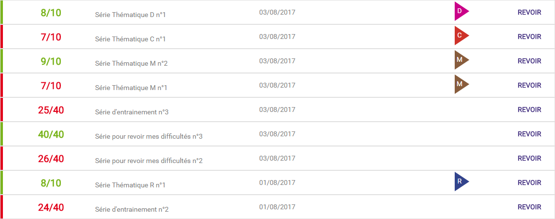 Il a raison, les séries thématiques ne servent que s'il y a vraiment une partie où tu as du mal. Mais il vaut mieux enchaîner des séries générales, c'est le meilleur moyen de retenir. Tu ne pourras jamais apprendre toutes les règles par coeur, tu tomberas forcément sur des trucs que tu ne connais pas. Pour ma part ça a été des questions sur les pénalités pour certaines infractions, fallait juste faire preuve de logique pour y répondre.