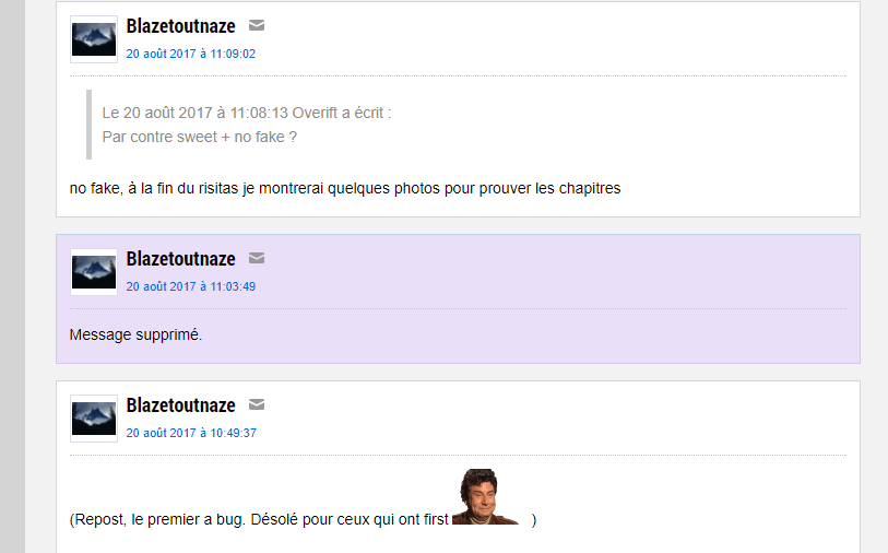 On voit que les messages avec les chapitres supprimé sont en violet, donc c'est genre un modo qui a supprimé