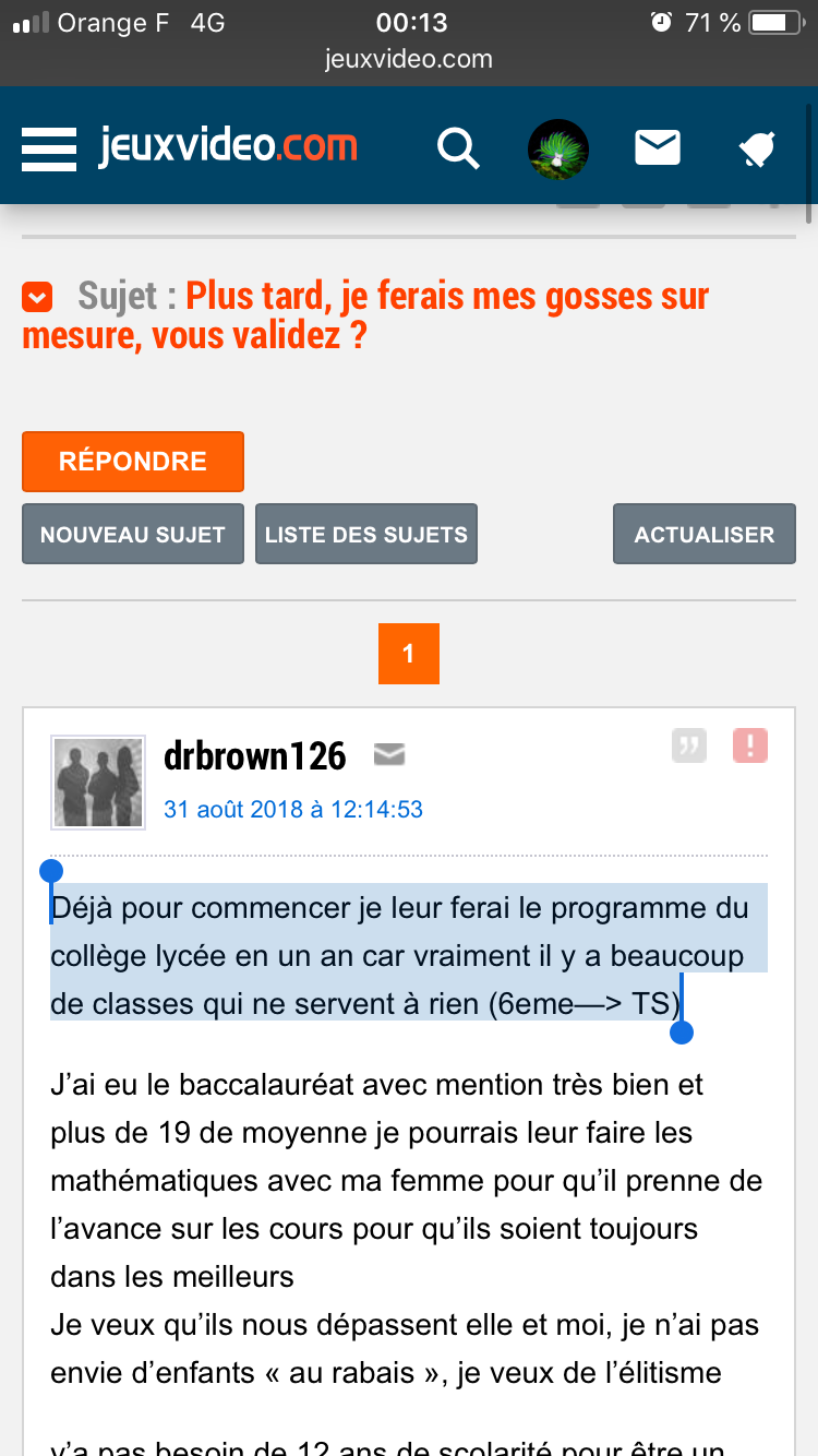 Mdr ca me fait penser au topic de drbrown oû il prevoit de faire majorer l'ecn à ses futurs mioches. On y croit.Oh merde j'ai encore raté une perle