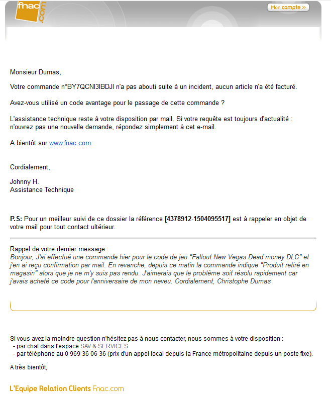 Y'en a d'entre vous qui ont réussi a gratter un truc au SAV ou vous avez vécu le même sort que moi ?