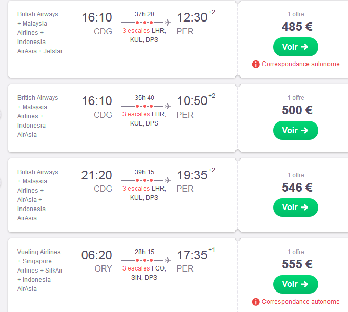 ou des Bruxelles Perth à 470€ vers le 20 aussi