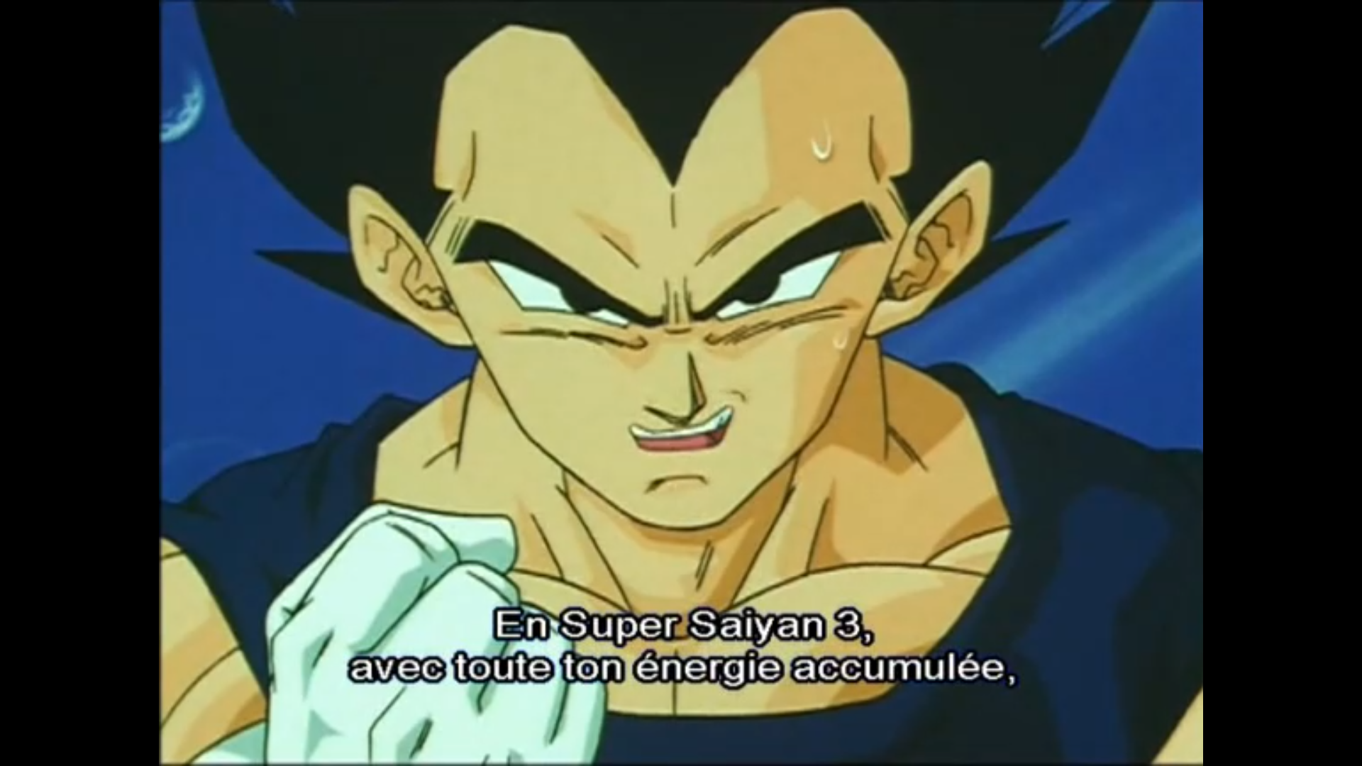 Par contre quand Kid Buu se bat vraiment contre Goku SSJ3, il fait une tête de mec vénère au corps à corps avec lui