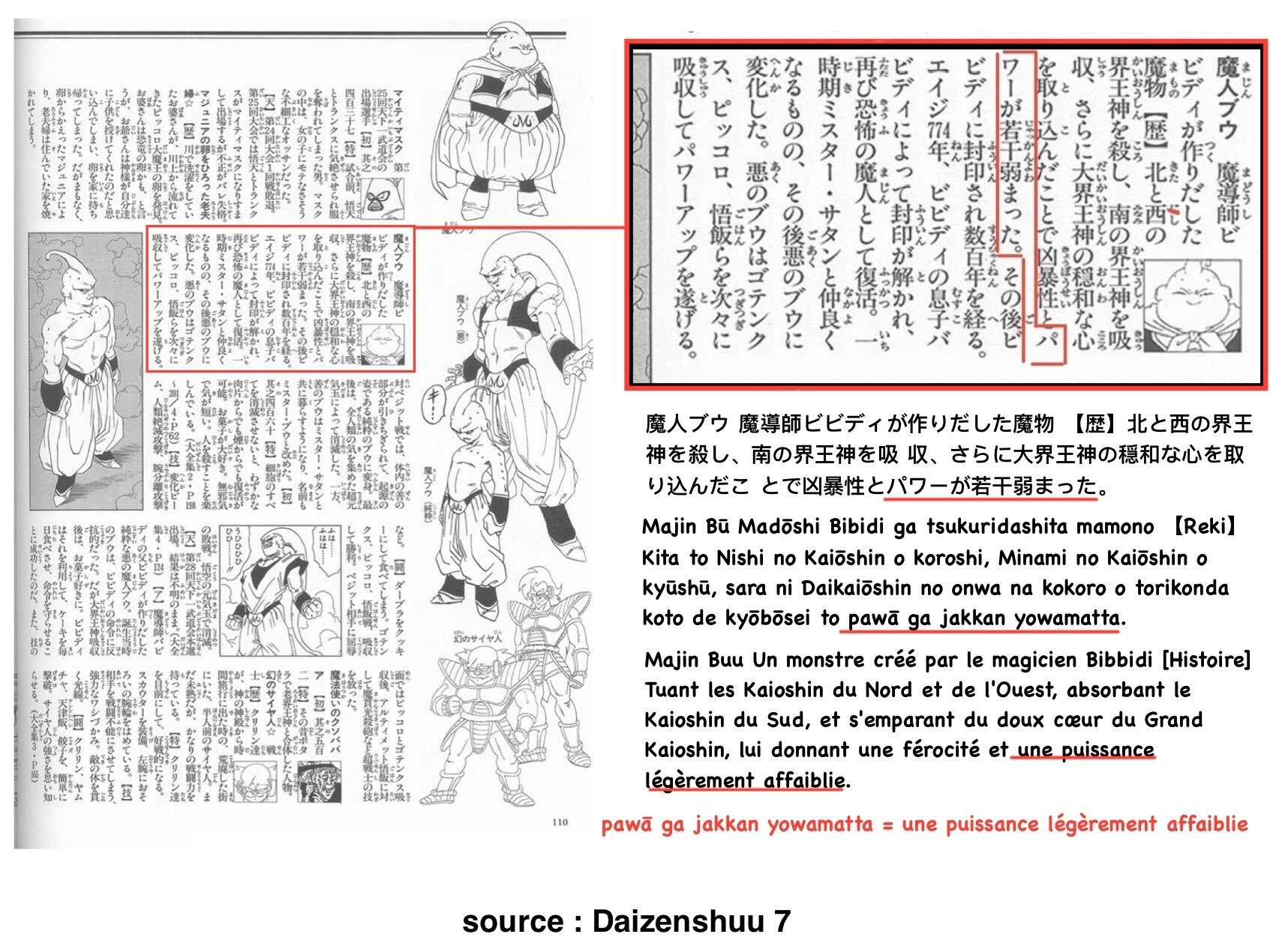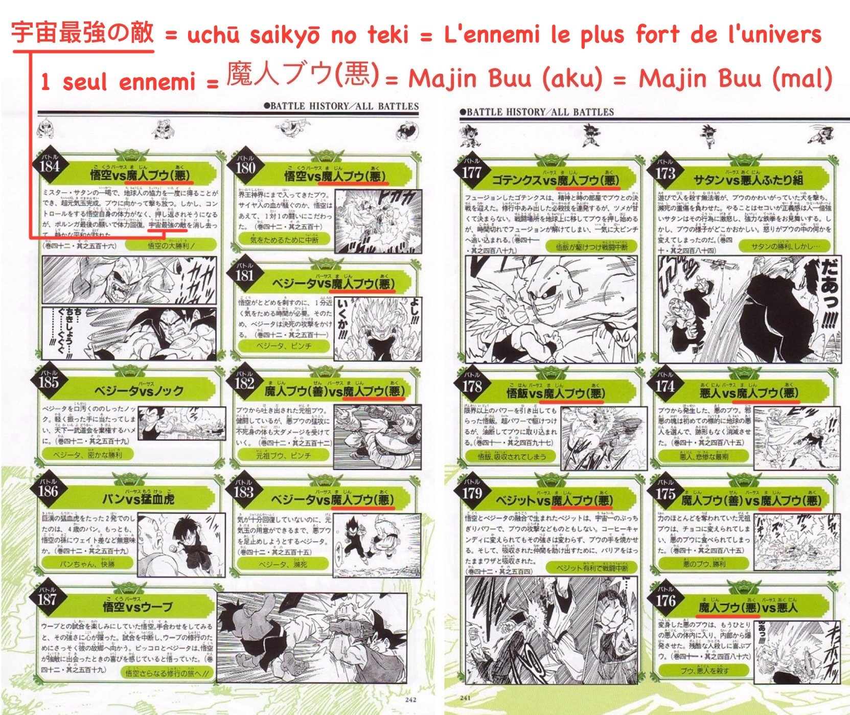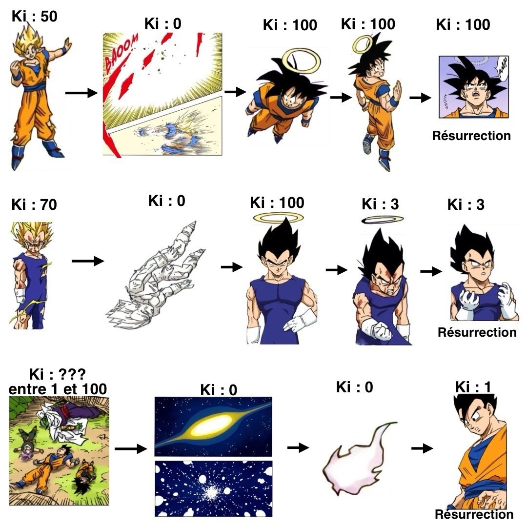 De même, cela induirait que Kid Buu = Gros Buu, ce qui n’a aucun sens, étant donné que le Gros Buu est plus faible que Super Buu qui est lui même plus faible que Kid Buu au vu de ce qui est dit par Kibitoshin.