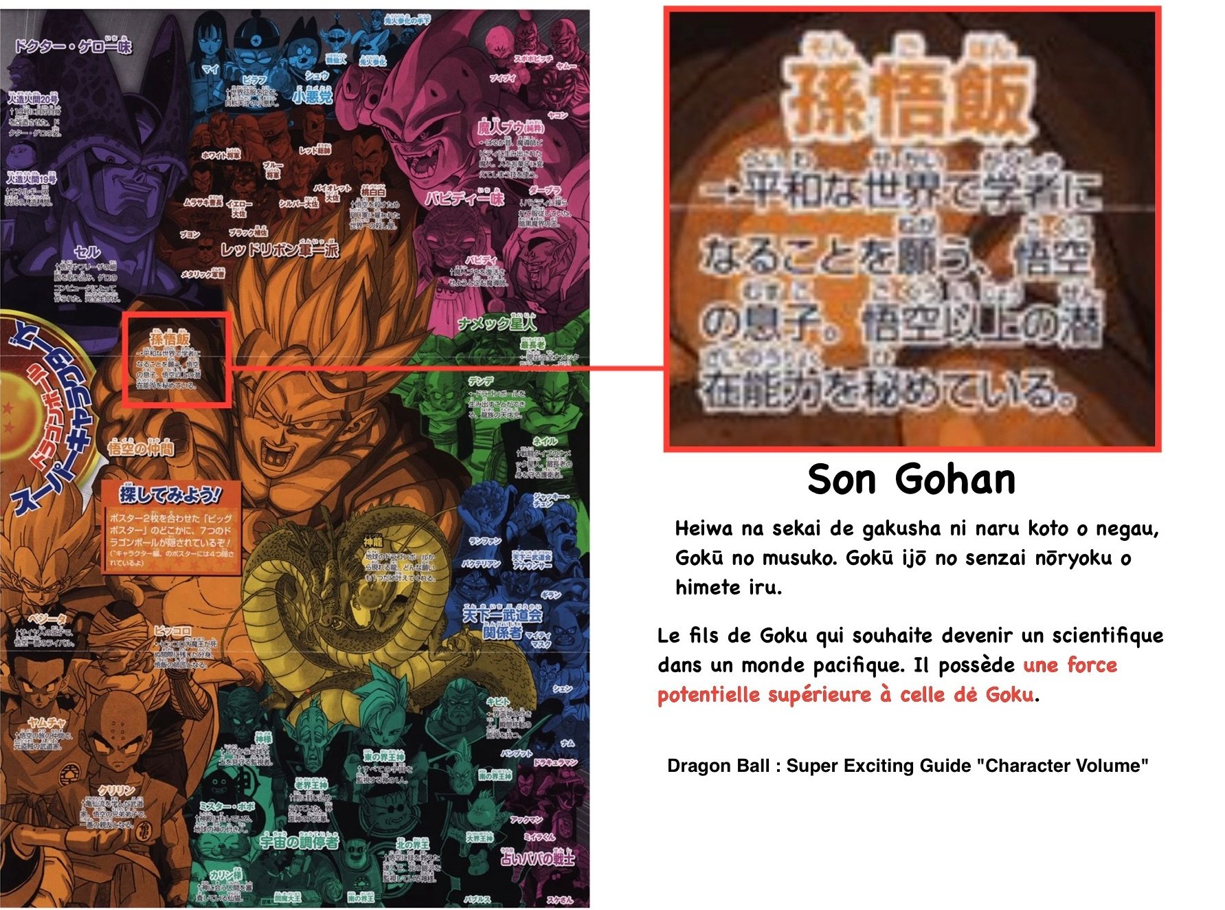 Et de l'autre un Guerrier qui a en absorptions Gotenks ssj3 (plus fort que Goku ssj3) + Gohan Ultime (plus fort que Gotenks ssj3) + intellect de piccolo + tous les autres membres de la Z team+ gros Buu etc et qui doit être géré par le plus puissant guerrier de tous les temps du manga original...