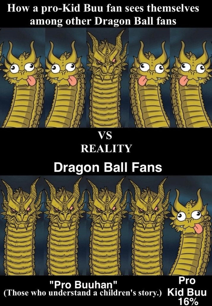 Si déjà tu affirmes comme un glandu que Super Buu faisait jeu égal avec Gotenks alors que c'est dit explicitement que Gotenks allait l'atomiser à la fin, sincèrement je fais quoi contre des gars qui inversent absolument tout les rapports de force de l'arc ? Vous cherchez quoi à vouloir même inverser un rapport de force aussi évident ?