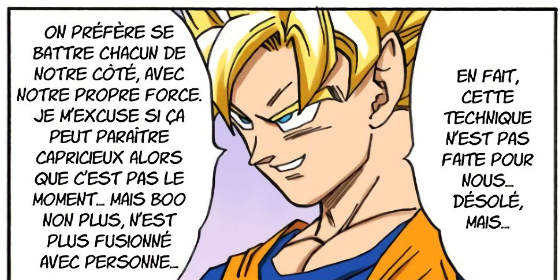 Goku 10 minutes apres: "Bon on vas se battre a la loyale hein, Buu n'est plus fusionné avec personne"