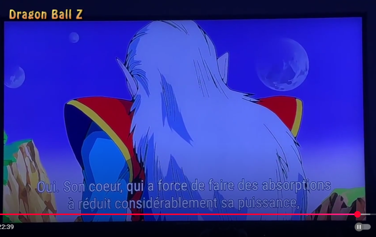 13 minutes 16 : "Plus il absorbe des guerriers puissants, plus il augmente, mais en contrepartie ça abaisse son énergie primaire qui est son KI maléfique"