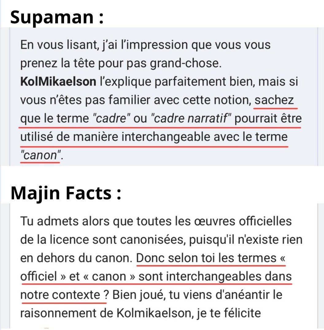 Bon écoute mon pote, je vois que tu tiens absolument à proposer des variantes sur une notion pourtant simple, qui sert uniquement à différencier les récits officiels intégrés à l'histoire principale des œuvres originales s'inspirant de l'univers fictif (sans avoir été officialisées par l'auteur). Mais au lieu de ça tu préfères établir des comparaisons hasardeuses entre Dragon Ball et les comics, comme si l'univers de Toriyama pouvait être entièrement remanié par d'autres auteurs dont les histoires seraient simplement officialisées par la Shueisha ou la Toei...