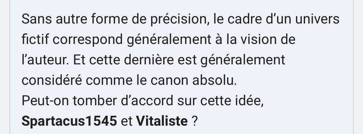 Sans autre forme de précision, le cadre d’un univers fictif correspond généralement à la vision de l’auteur. Et cette dernière est généralement considéré comme le canon absolu.