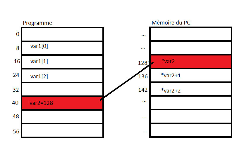 Si on reprend à partir du langage C, on pouvait avoir des variables, et des pointeurs :