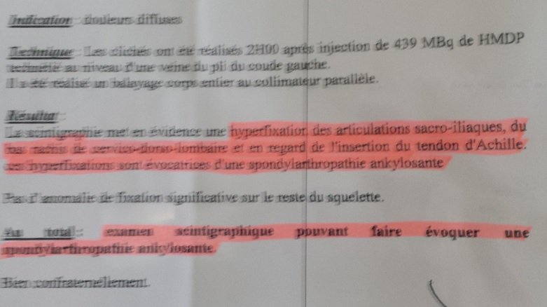 ( marrant de relire ça sachant que j'ai fait la scinti osseuse ensuite, qui montre bien la race d'anomalies osseuses au final )