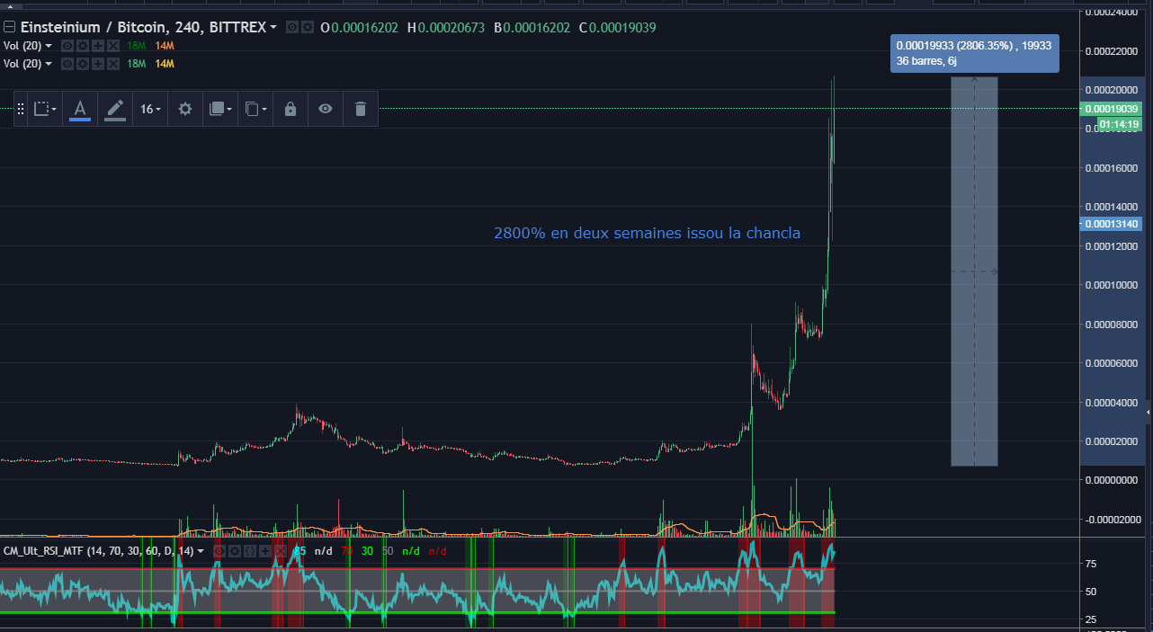 Il y'a pour l'instant un vase communiquant entre bitcoin et altcoin (si le btc crash les alt pump), moi là je mise sur un crash du btc de quelques centaines ou milliers d'euros avant une nouvelle montée au dessus des 15.000, donc pour l'instant j'ai 75% de mon capital en XEM et 25 en BTC