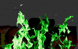 Genre dès qu'il a lancé la poudre là, ya eu un espèce de feu vert qui nous a enveloppé mais genre c'était pas chaud tavu. Du coup, à cause des flammes on a été grave éblouis et tout et dès que les flammes elles sont retombées, on était autre part gros