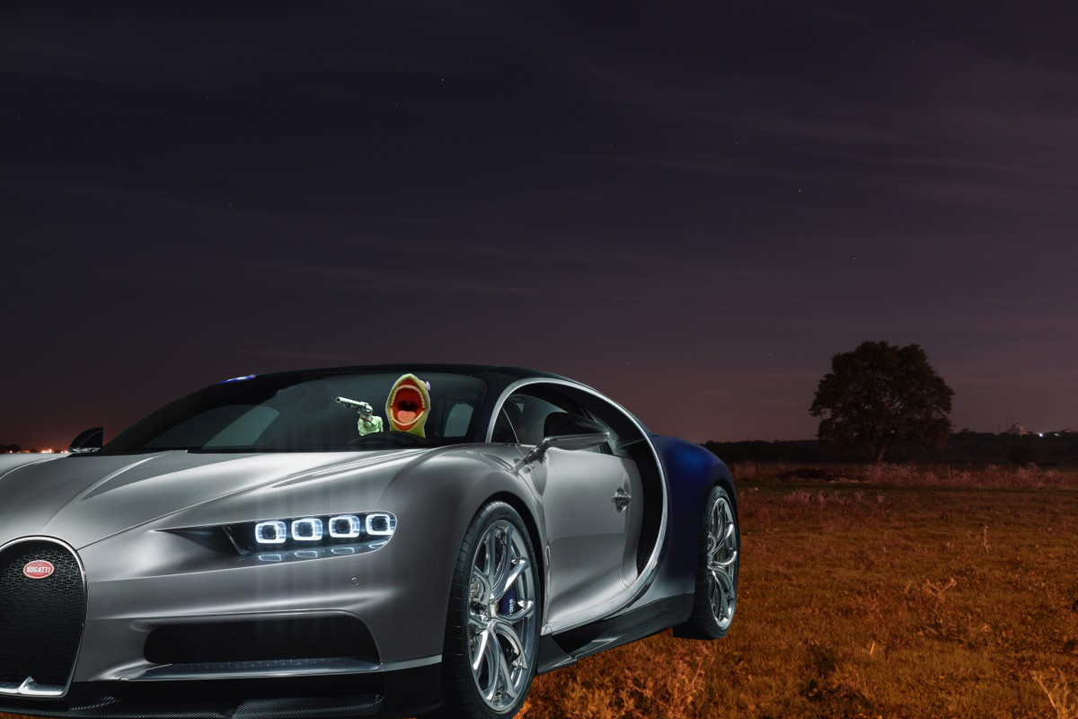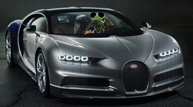 Bref, on commence à suivre Kermit qui nous emmène devant genre une espèce d'équipe de techniciens à côté genre de deux grosses Bugatti Chiron fréro, ça rigolait pas du tout