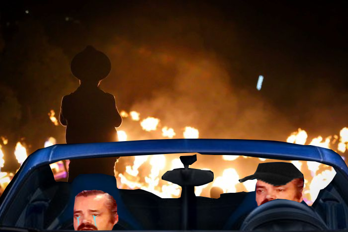 Genre, c'était comme à l'aller, je sentais le feu nous éblouir mais en même temps, j'avais l'impression d'être désarticulé de fou genre j'avais l'impression qu'on était tous dans une sorte de bouillie ou zerma je sais pas trop quoi et ça tournait de fou, c'était horrible frère