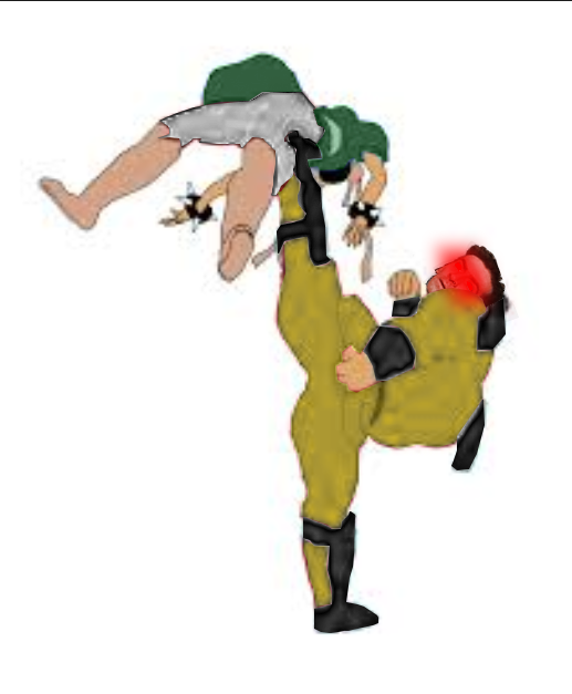Bam il lui choppe la carotide, il lui arrache la moitié de la gegor qu'il recrache sur une table de la salle et
