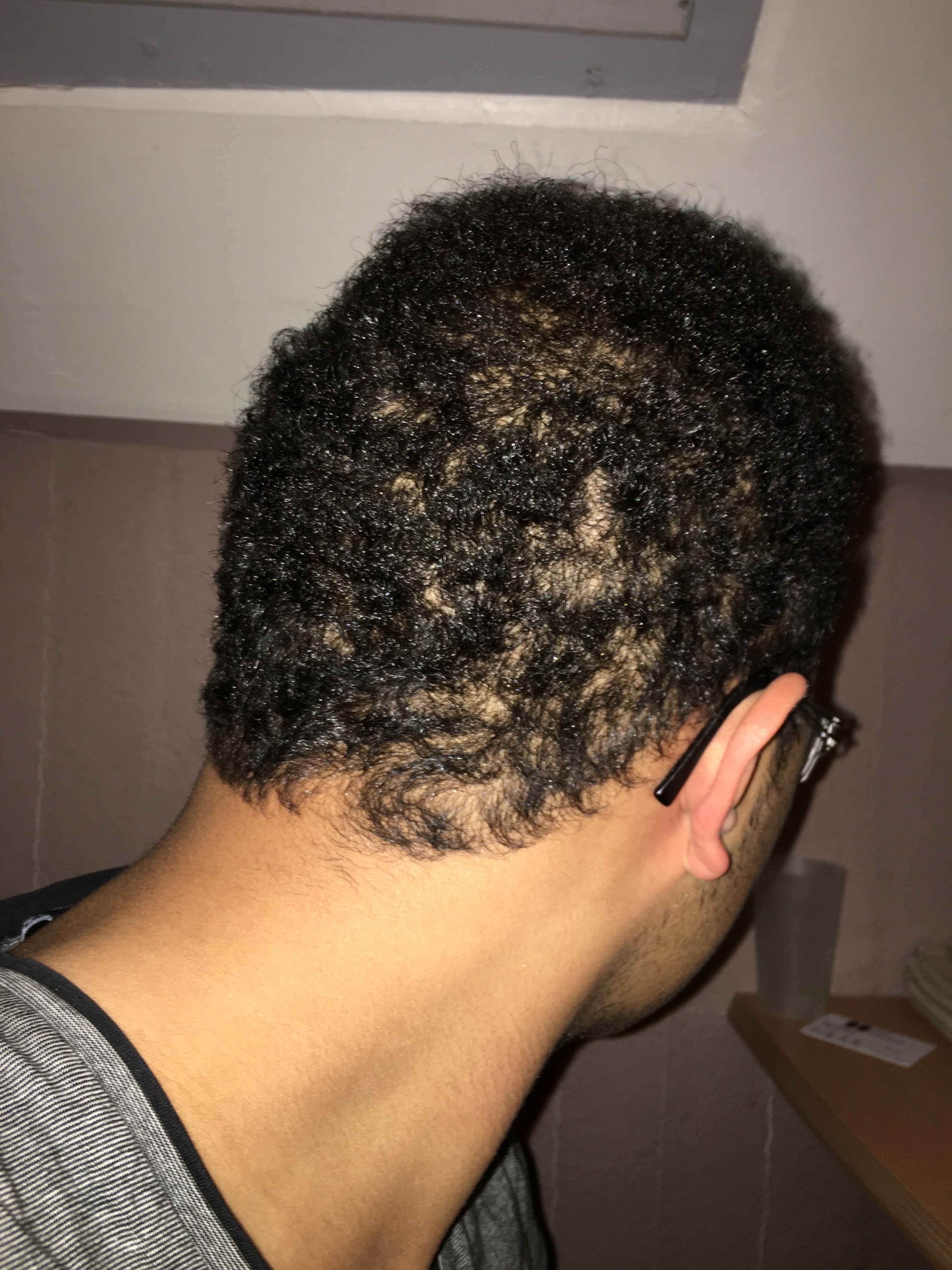 J'ai fait une curieuse découverte en prenant une photo de l'arrière de mon crâne avec le FLASH.Il semble que l'ensemble de mes cheveux se sont affinés.