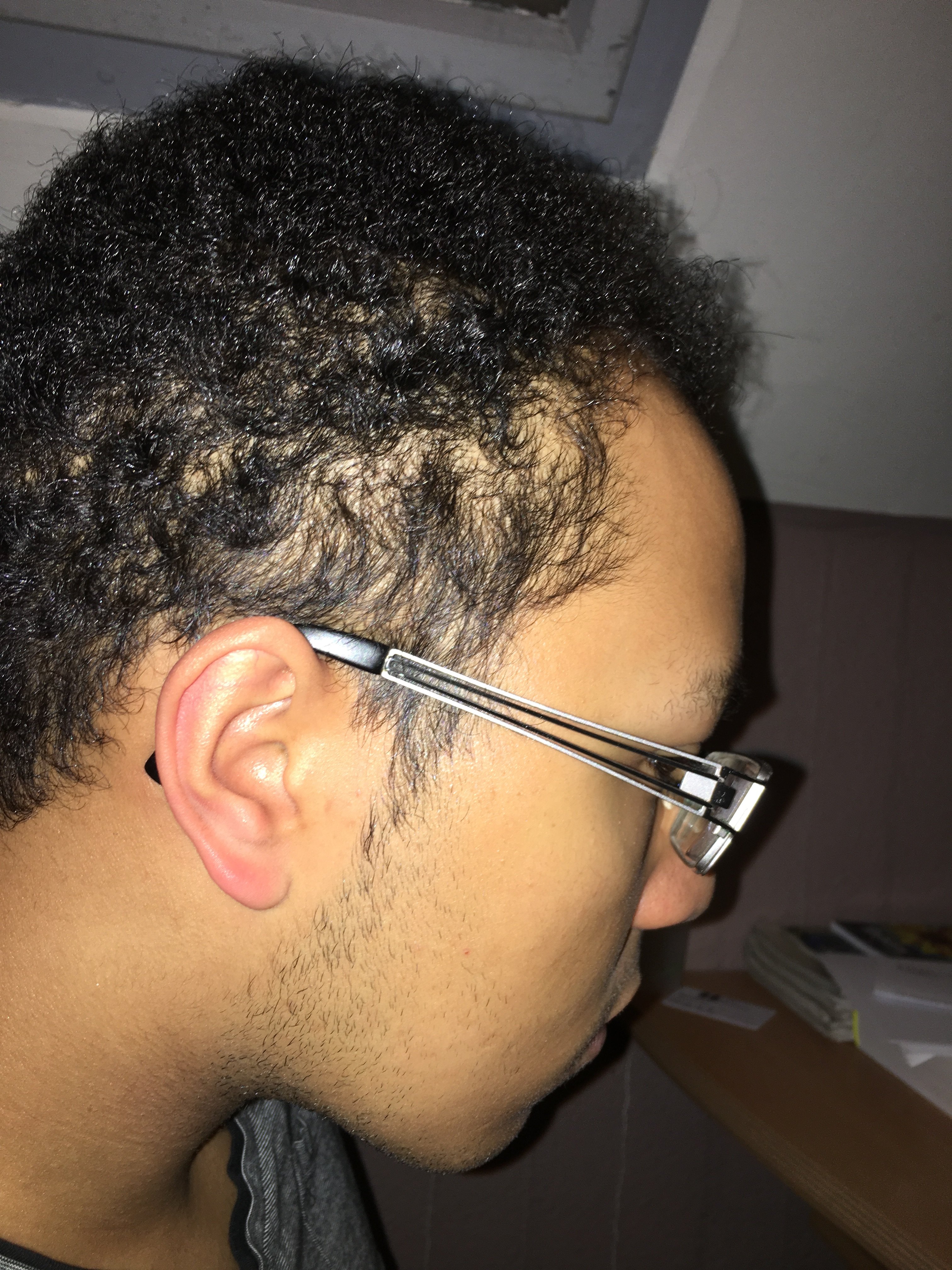 Cheveux clairsemés sur le coté gauche