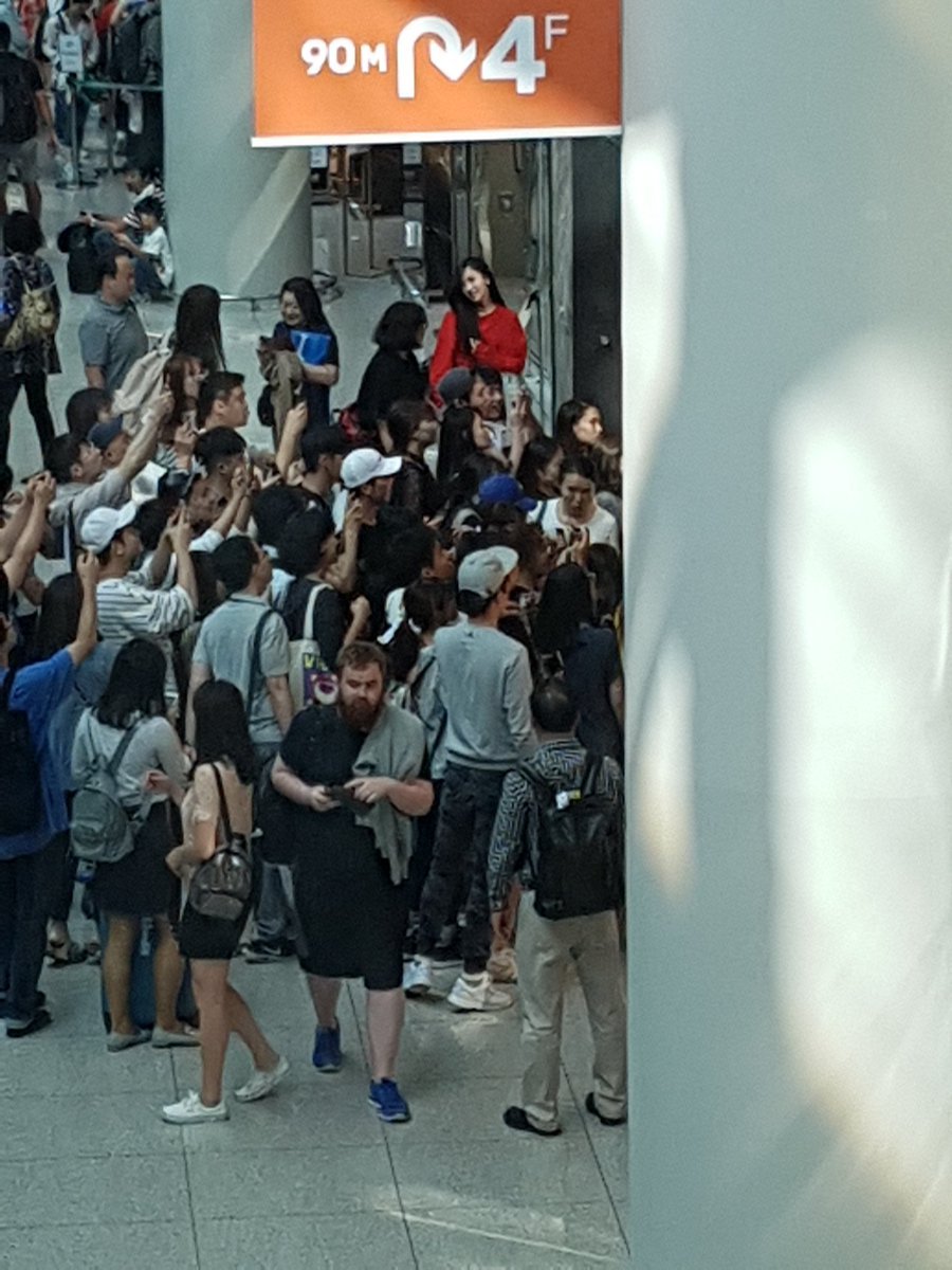 C'est l'année dernière, dans une boutique de l'aéroport, y'avait qqes Twice en train de shopper donc les gens se sont massés devant la boutique... sans se rendre compte que Mina se tenait tranquillement tout près d'eux