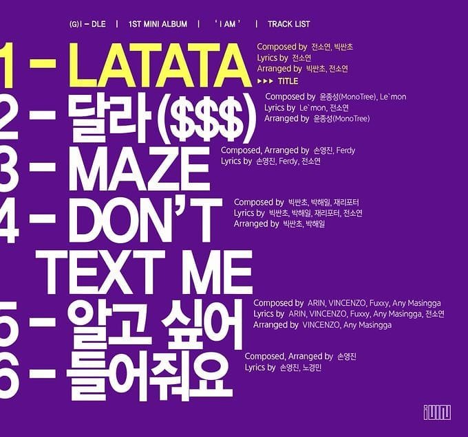 La tracklist de (G) I-DLE le nouveau groupe de Cube :![]()