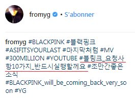 Dans son post Instagram YG à mit l'hastag "Blinks_JeFeraiEnSorte_DeRéaliser_Les10Demandes"