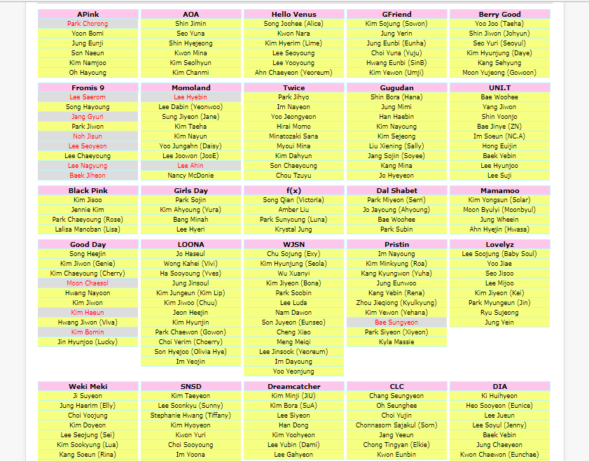 Le groupe ma jamais intéressé. Mais je me suis rappeler du nom Namjoo et je connais Hayoung de Playback et Naeun d'April