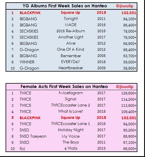 102 001 ventes la première semaine du mini-album (seul Twice a fait mieux chez les filles)
