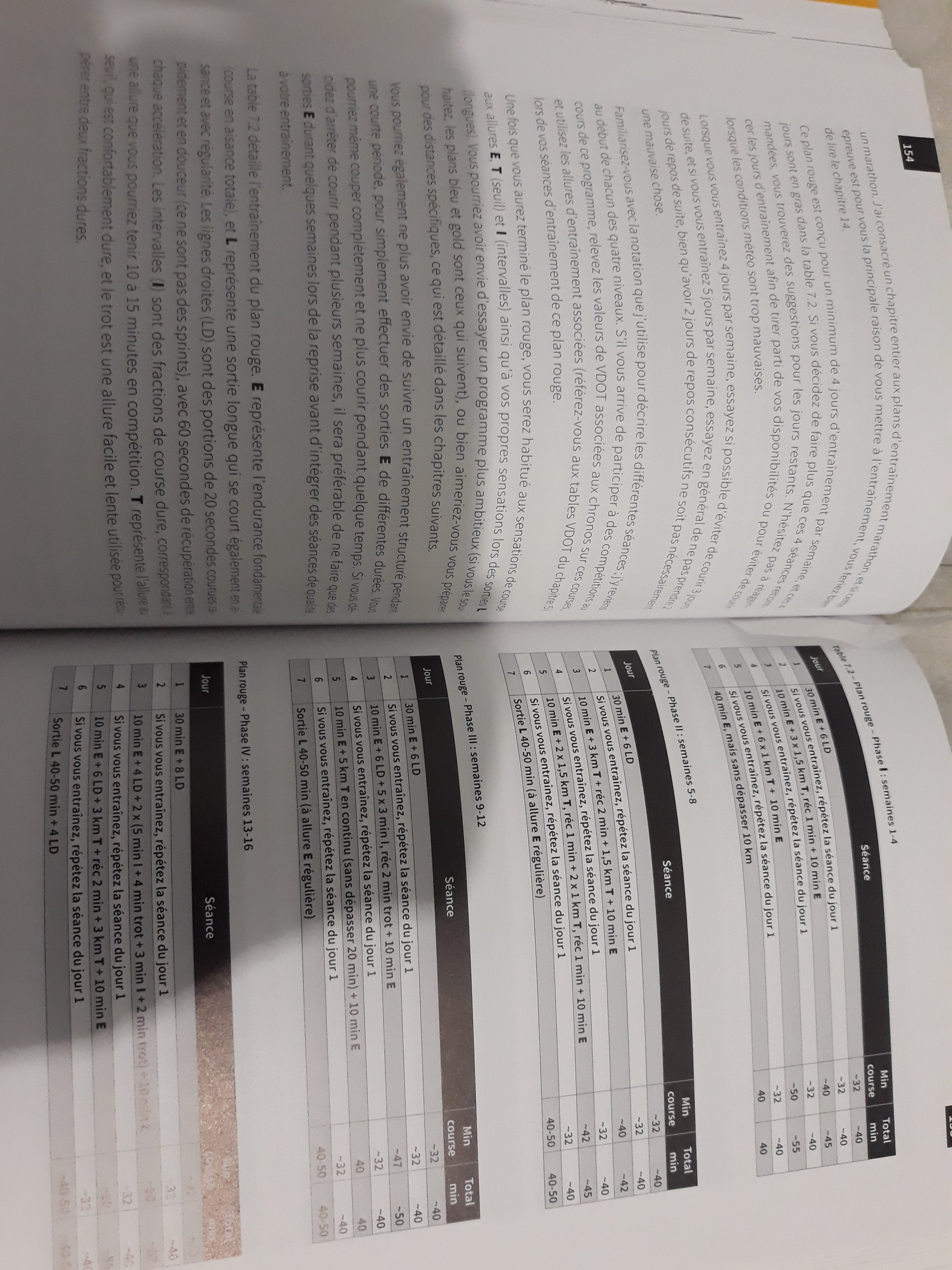 N'etant pas debutant ,n'y experimente,prog rouge " amelioration de la condition physique ! Amene sur un semi marathon.