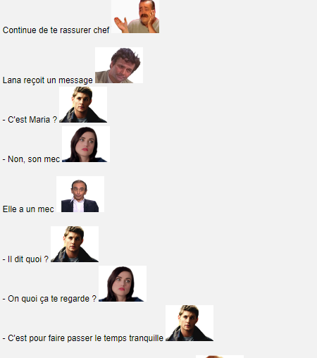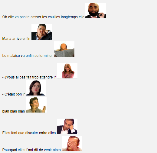 - Je te crois pas mais t'façon elle me dira en privé