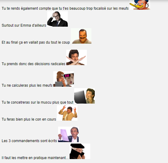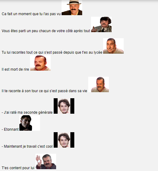 - Bah pendant que j'étais là t'as dansé avec 3 meufs, t'as bien bu et t'es tombé... beaucoup de fois