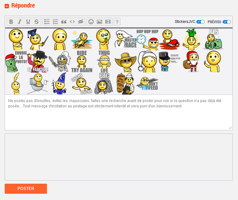 La ligne en pointillés là j'peux l'utiliser pour changer la catégorie de stickers, mais bon la barre de base serait mieux (je suis sous Firefox), ça a bien buggué J'ai redémarré mon navigateur, mais je vais essayer de désinstaller / réinstaller et redémarrer encore pour voir Sinon à part ça ça marche