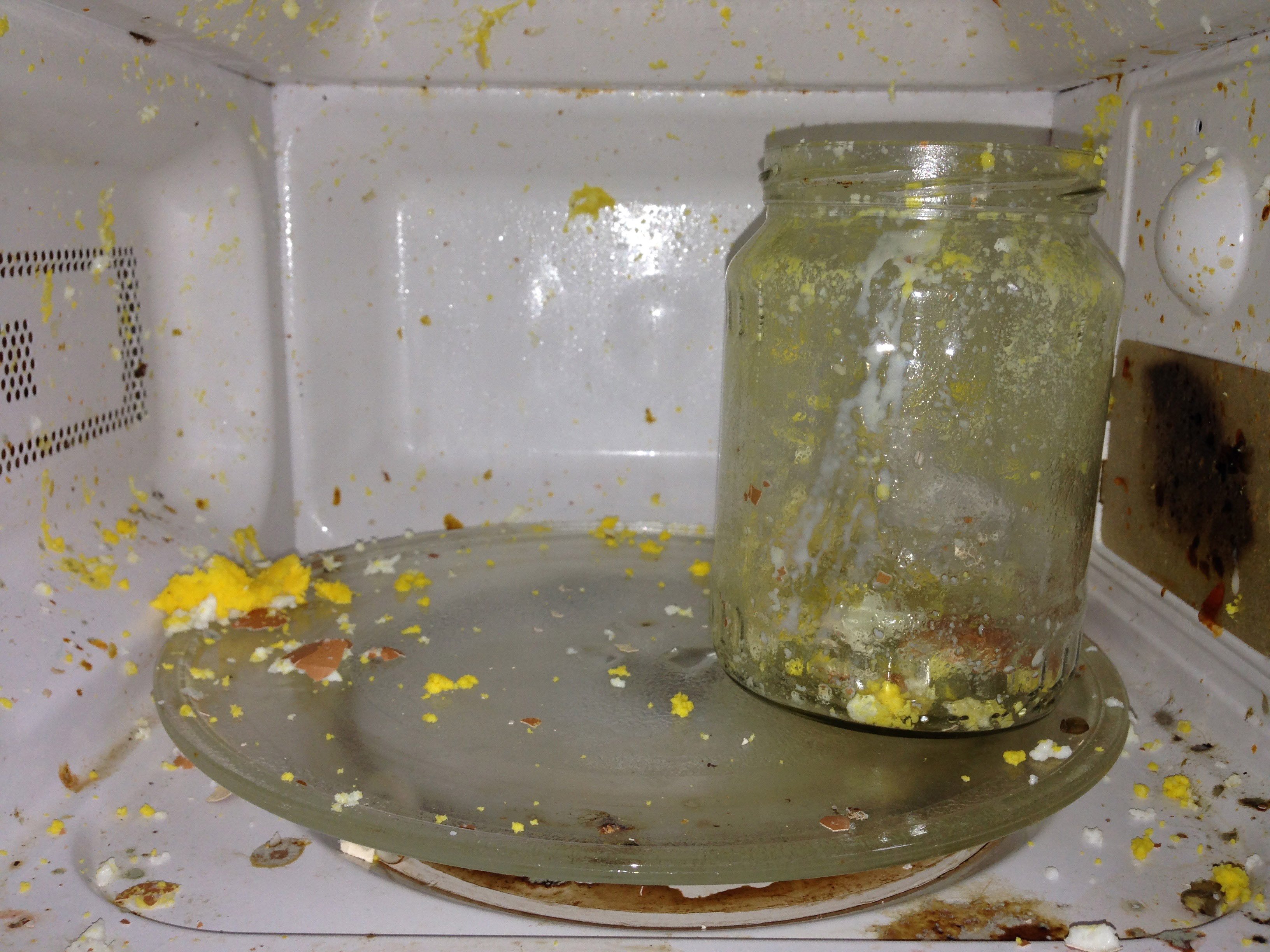 Vous prenez l'oeuf, vous le mettez dans un récipient puis vous le foutez au micro-ondes jusqu'à ce qu'il explose