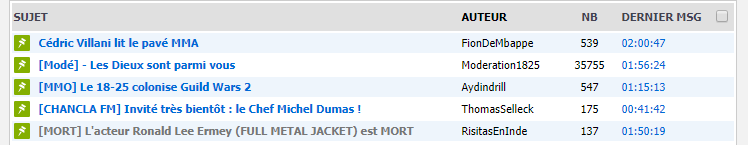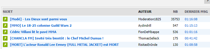 Les 5 lettres des topic épinglé sont MMCCM