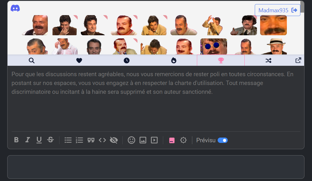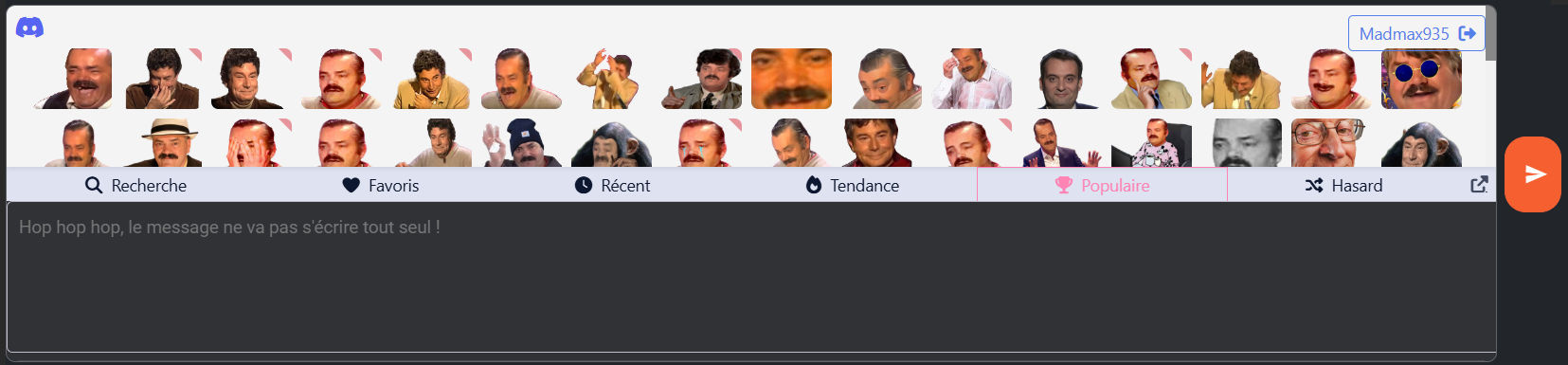 Pareil + impossible de citer. Par contre les stickers Risibank sont là