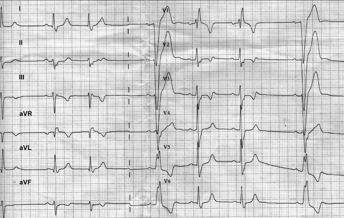 Bon le sus-ST en V3 je te l'accorde mais on mettra ca sur le compte d'un trouble de repolarisation non significatif.
