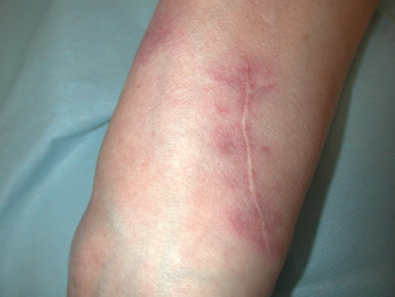 Dans notre diapo de séméiologie on nous montre un bras avec ce qui ressemble à une induration autour d'un vaisseau. Comme si le vaisseau aspirait la peau autour. Et le prof nous dit que c'est chez une femme qui a fait plusieurs poussées d'uvéite. Il est où le rapport ?