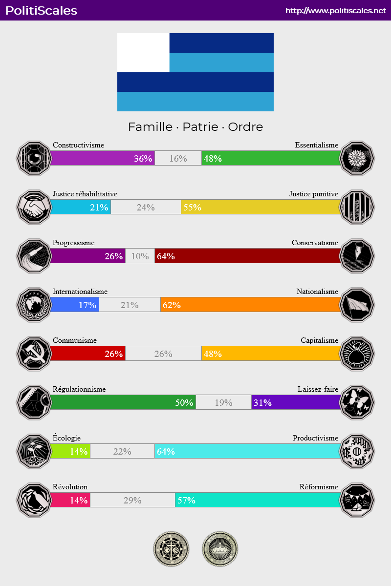 http://www.politiscales.net/fr_FR/results/?s0=31&s1=52&e0=24&e1=40&t0=64&t1=12&m1=14&m0=50&b1=71&b0=5&c1=55&c0=19&j0=24&j1=48&femi=14&p0=33&p1=26&mona=100&reli=100Se drapeau