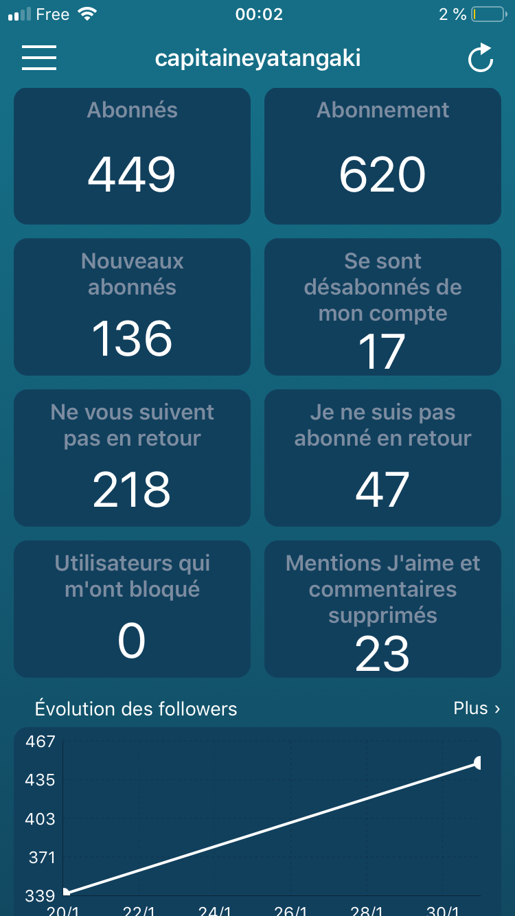 On a répondu aux nouveaux venus cette nuitPar contre ceux qui espèrent venir pour gratter des follows et unfollow dans la foulée, ça sert a rien, vous serez ban, on a tous des appli pour voir ce genre d’entourloupe