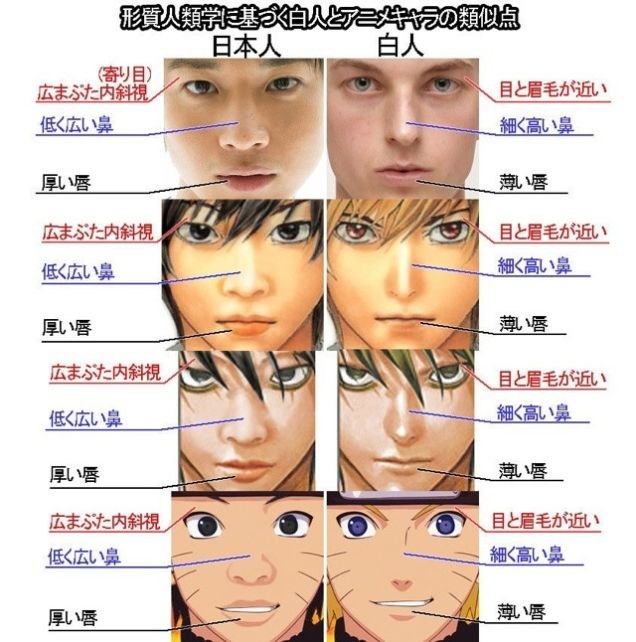 La vérité c'est que les mangaka japonais prennent (consciemment ou non) les blancs pour modèles dans leur dessins cars ils nous trouvent plus esthétiques