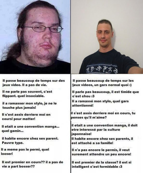 Je parlais des hommes qui imposent leur vraie personnalité mais qui n'ont aucune crédibilité aux yeux des femmes, tu saisis ? C'est comme certains kheys qui ont posté une photo qui montre la différence entre un BG et un moche. Flemme d'aller trouver ce lien