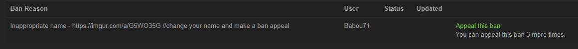 J'avais mis une fois trafic controle avec un pote on a été perma ban jusqu'au changement de pseudo aussi (à l'époque où c'était le pseudo steam qui s'affichait)